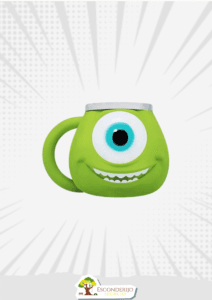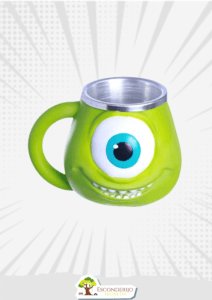 Possui 1 caneca decorativa de resina e alumínio no tema Monstros SA do personagem Mike Wazowski com capacidade de armazenar 250ml