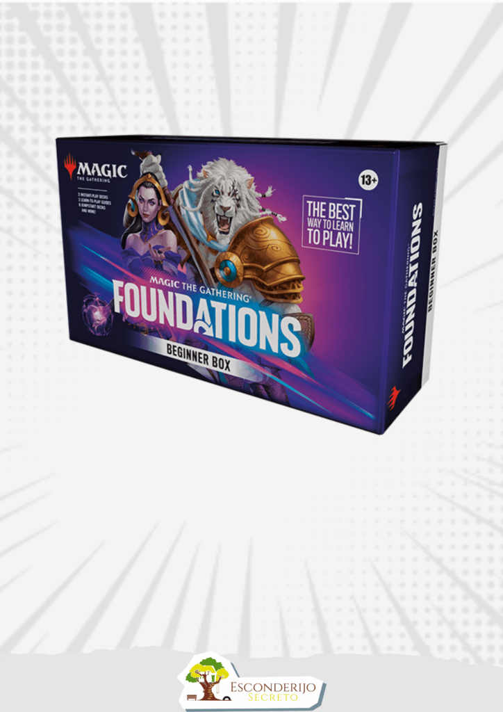 Nesta caixa, você encontrará tudo o que precisa para começar sua jornada Magic: The Gathering — um jogo tutorial guiado por dois livretos passo a passo, além de uma variedade de pacotes de cartas prontos para jogar para explorar assim que você entender o básico. Cada Foundations Beginner Box contém: um baralho tutorial Cats de 20 cartas, um baralho tutorial Vampires de 20 cartas, 2 livretos de guia Quick Start para aprender a jogar, oito pacotes Jumpstart temáticos de 20 cartas (basta embaralhar quaisquer dois juntos para um baralho pronto para jogar), 1 livreto Rules Reference, 2 Playmats e 2 contadores de vida Spindown.