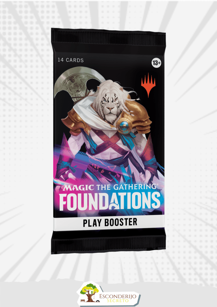 O melhor momento para jogar seu primeiro jogo de Magic é agora. Mergulhe em Foundations para criar e compartilhar sua experiência quintessencial de Magic: The Gathering jogando e colecionando cards selecionados para dar a cada jogador a vantagem. Este Foundations Play Booster contém 14 cards de Magic: The Gathering e 1 card Token/Ad ou Art. (Um card de Art regular pode ser encontrado em 30% dos pacotes e um card Signature Art carimbado com foil pode ser encontrado em 5% dos pacotes.) Cada pacote inclui uma combinação de 1–4 cards de raridade Rara ou superior e 3–5 Uncommon, 6–9 Common e 1 Land (Full-Art Land em 25% dos pacotes). Um card de qualquer raridade é Traditional Foil. O card de Land também é Traditional Foil em 20% dos boosters.