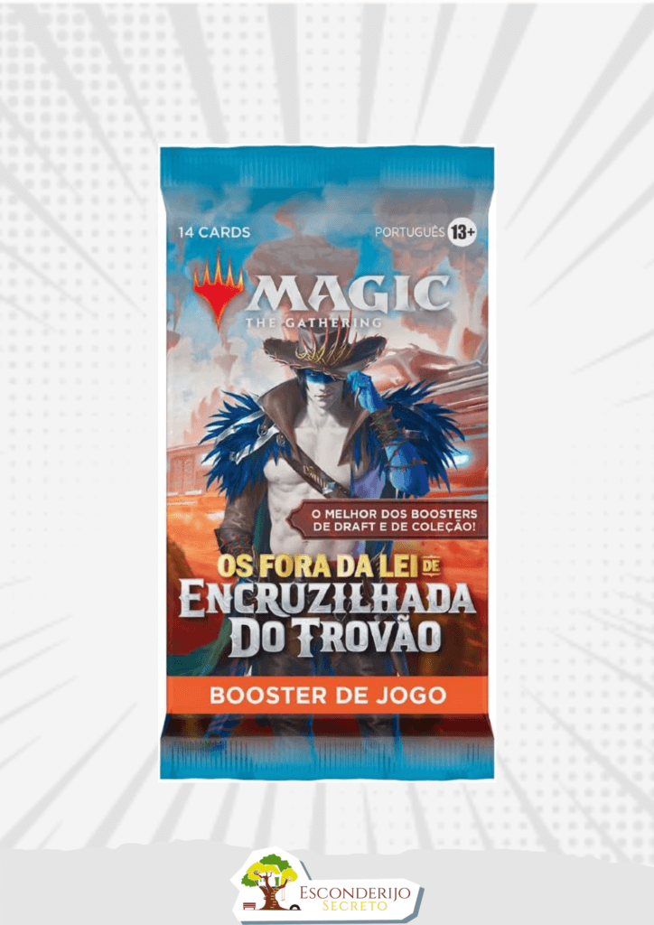 Perfeito para jogos limitados e pacotes de abertura apenas por diversão, cada Outlaws of Thunder Junction Play Booster contém 14 cartas de Magic: The Gathering e 1 carta de Token/Anúncio ou carta de Arte. (Um cartão de arte normal pode ser encontrado em 30% dos pacotes e um cartão de arte exclusivo carimbado pode ser encontrado em 5% dos pacotes.)