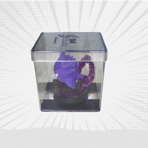 Miniatura feita de resina e plástico e pintada à mão, dentro de caixinha cúbica de acrílico, com aproximadamente 8cm de aresta.