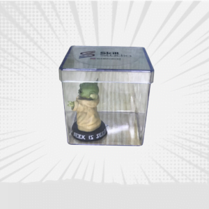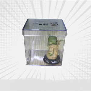 Miniatura feita de resina e plástico e pintada à mão, dentro de caixinha cúbica de acrílico, com aproximadamente 8cm de aresta.