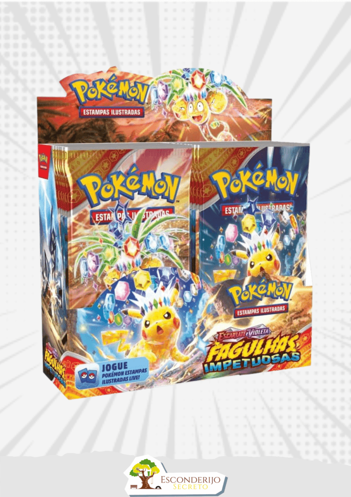 Uma tempestade crescente de forças estelares! Terawatts de eletricidade desabam dos céus em um paraíso tropical, preparando o palco para um Pikachu ex supercarregado! Com o poder dos Pokémon ex Tera Estelares, os litorais se iluminam e revelam um desfile de Pokémon dragão liderados pelo gigantesco Exeggutor de Alola ex! Archaludon ex e Latias ex completam o bando, enquanto novas cartas ACE SPEC e novos Pokémon ex mostram para o que vieram. As tensões aumentam e os dragões rugem em alto e bom som na expansão Escarlate e Violeta — Fagulhas Impetuosas do Pokémon Estampas Ilustradas!